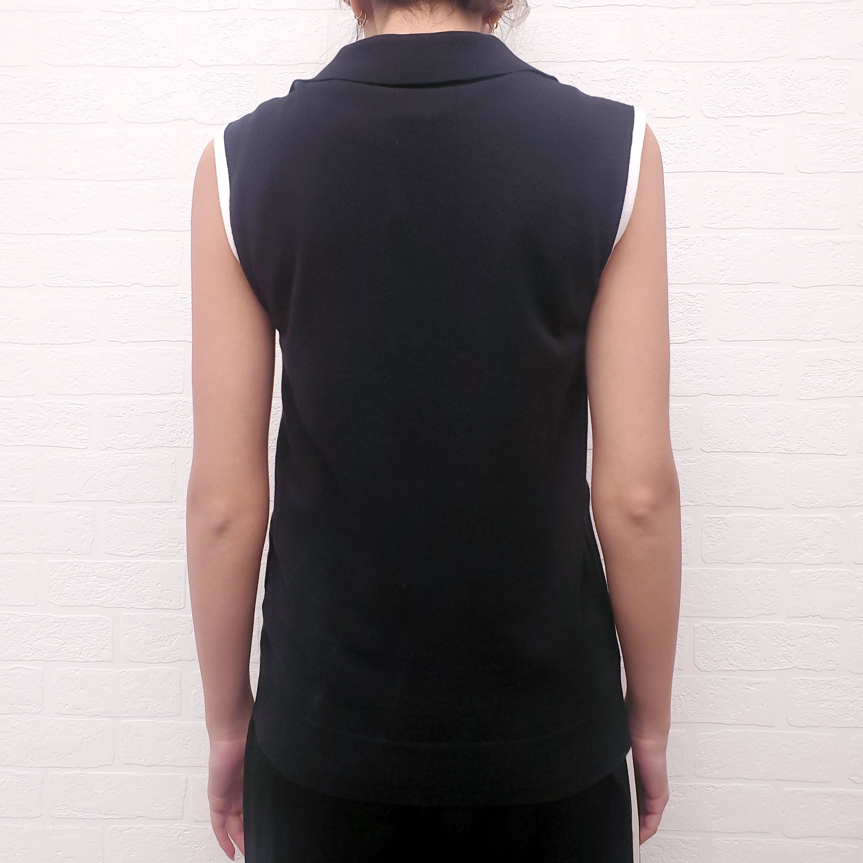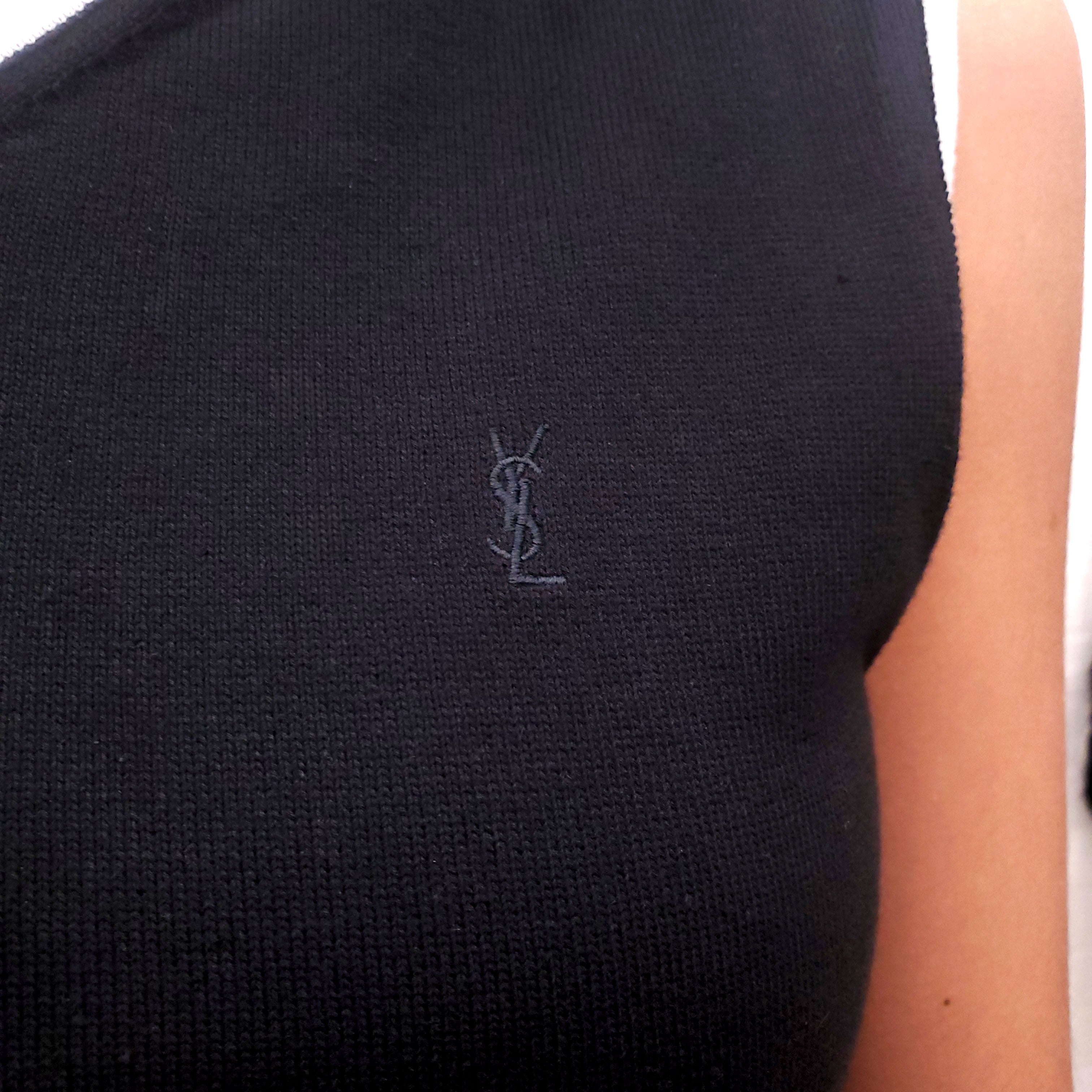 SAINT LAURENT BLACK SLEEVELESS SWEATER VEST WITH WHITE TRIM AND YSL LOGO - SIZE M