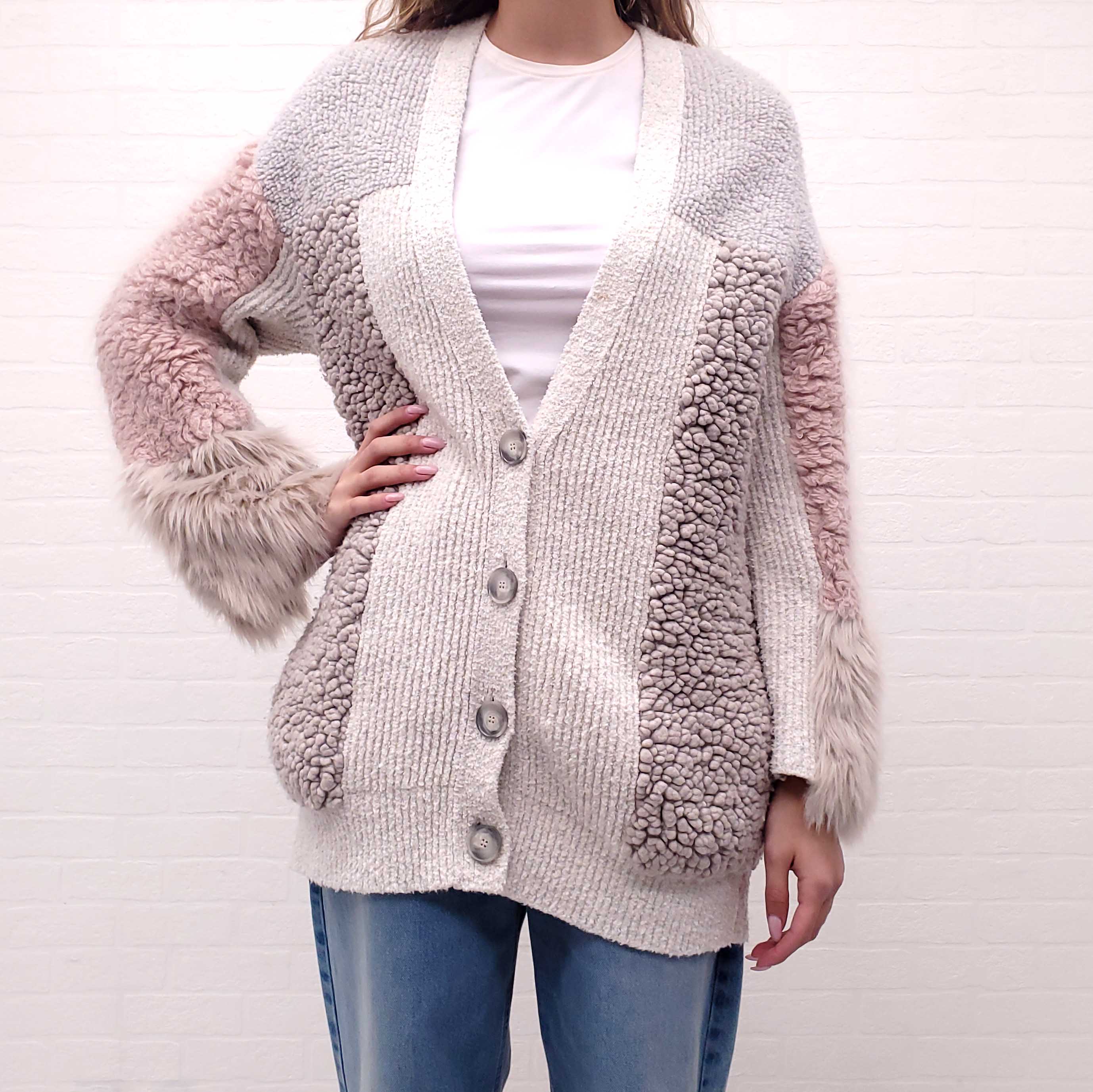 STELLA MCCARTNEY OVERSIZED SWEATER CARDIGAN WITH FAUX FUR - SIZE 36