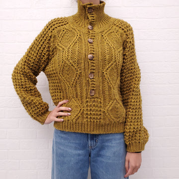 THE GREAT MUSTARD YELLOW CABLE KNIT CARDIGAN - SIZE 1/S