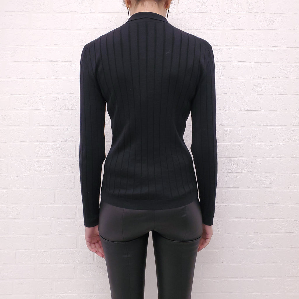 THE ROW BLACK RIBBED POLO CARDIGAN - SIZE S