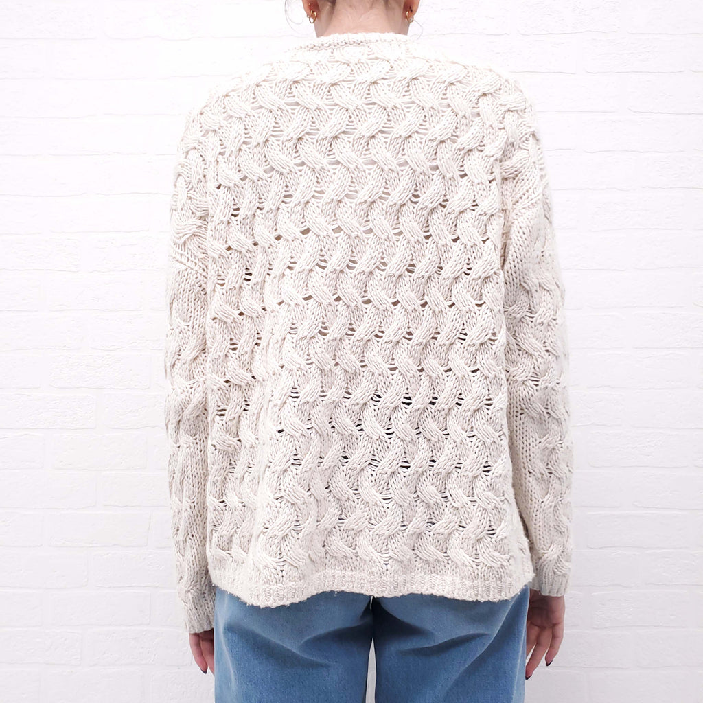 THE ROW OVERSIZED CREAM CASHMERE AND SILK CABLE KNIT SWEATER - SIZE S