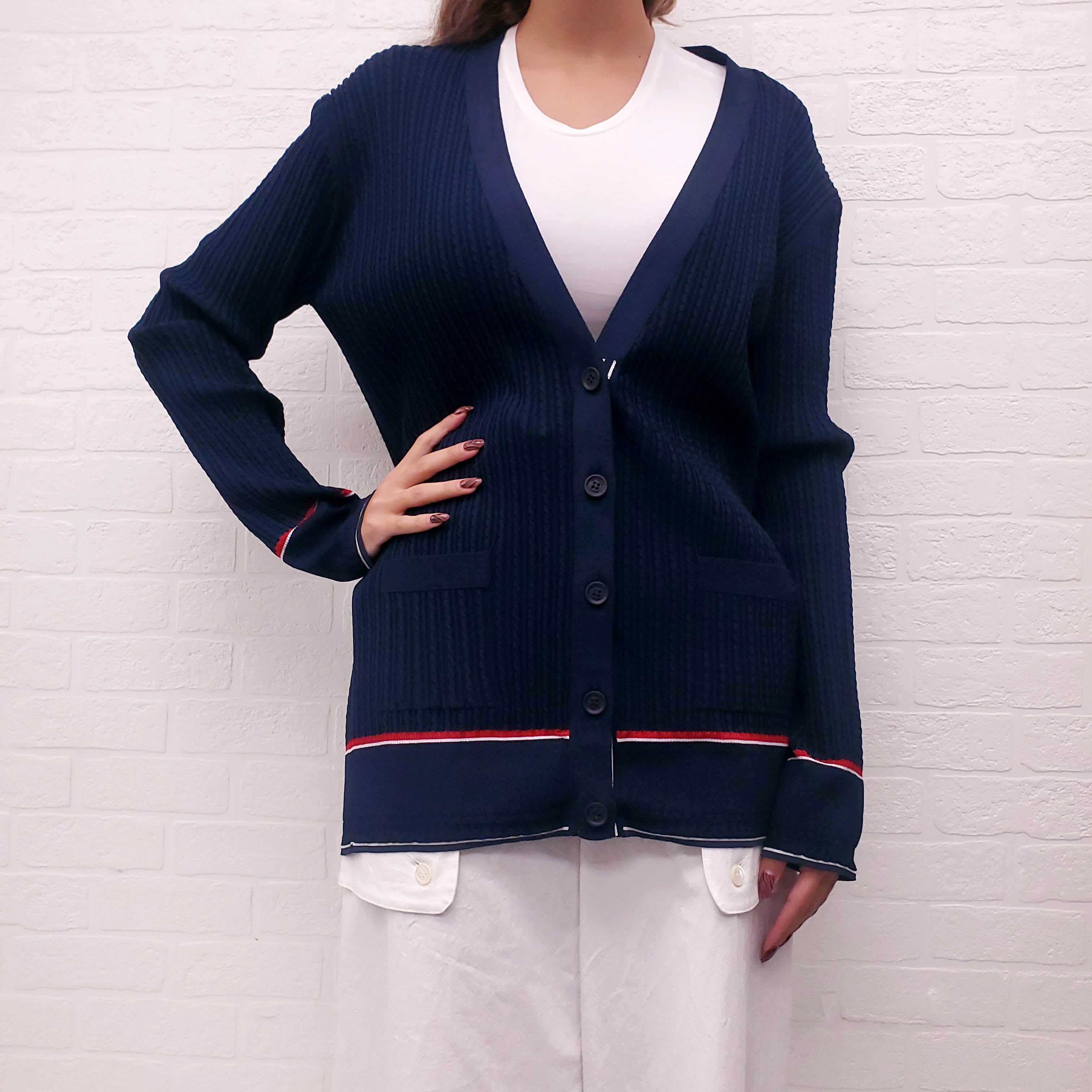 THOM BROWNE NAVY CARDIGAN - SIZE 44