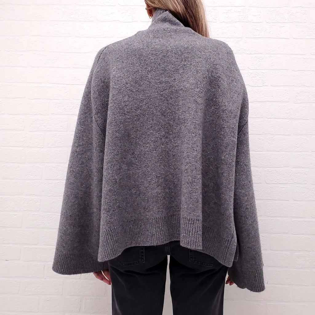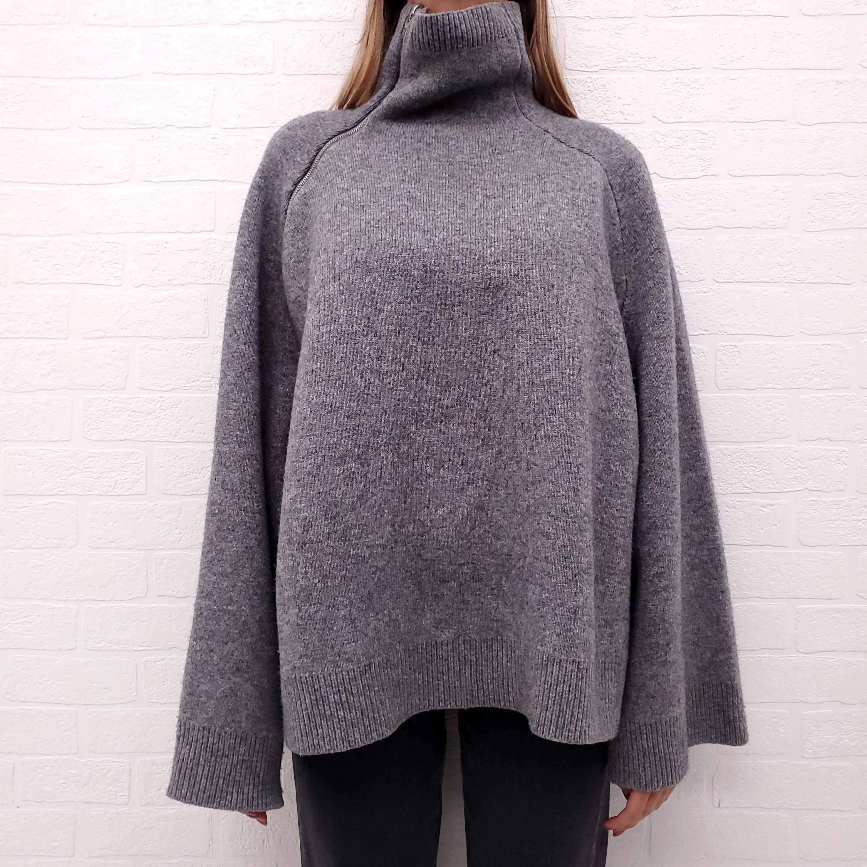 TOTEME OVERSIZED GREY SWEATER WITH ZIPPER DETAIL - SIZE M