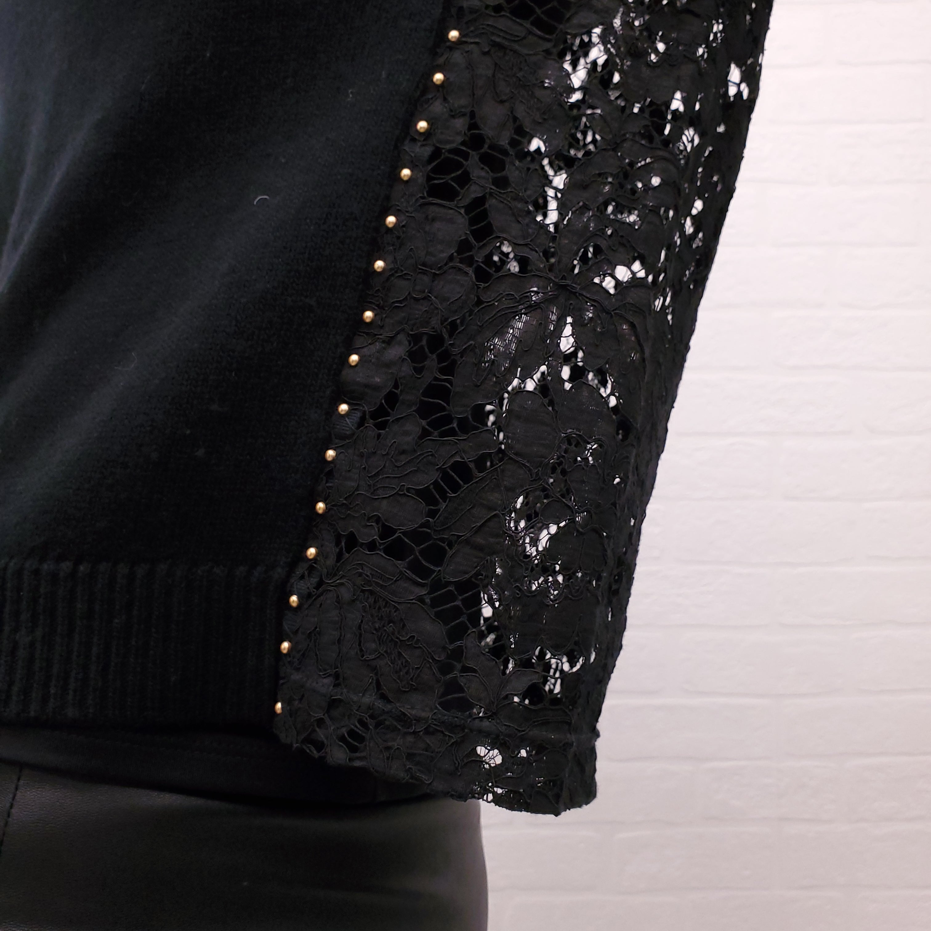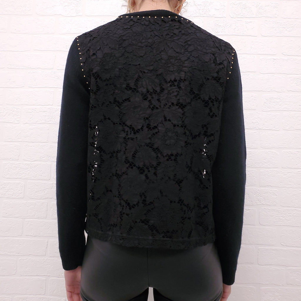 VALENTINO BLACK STUDDED SWEATER WITH LACE - SIZE M