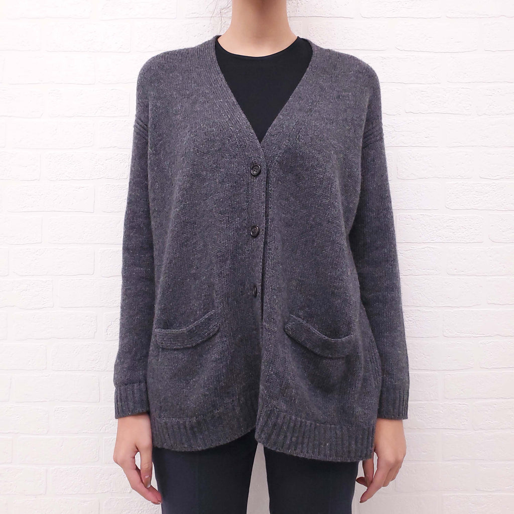PRADA GREY CASHMERE AND WOOL CARDIGAN WITH SUEDE ELBOW PATCHES - SIZE 42