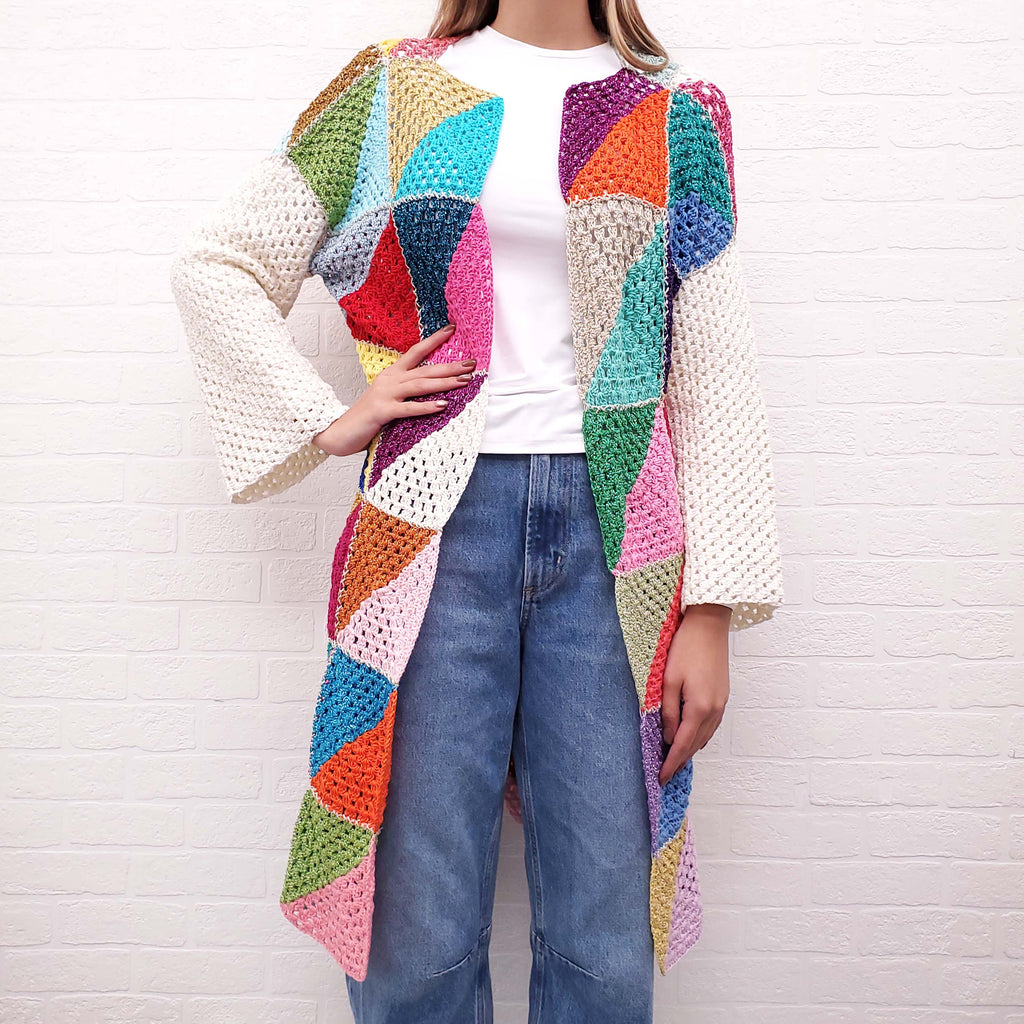 ROSE CARMINE MULTICOLOUR 'COAT DIAGONALES' CROCHET CARDIGAN - O/S