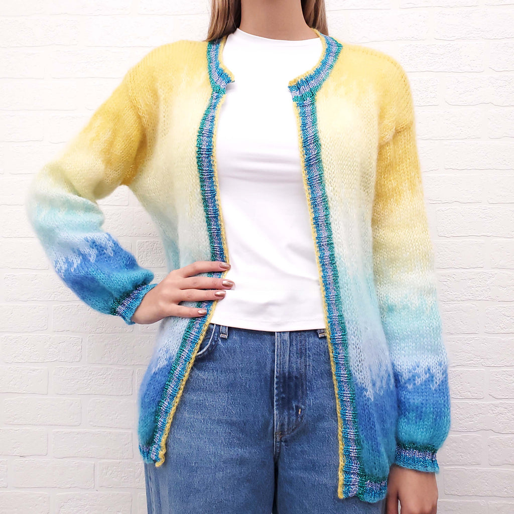 ROSE CARMINE YELLOW AND BLUE OMBRE CROCHET CARDIGAN - O/S