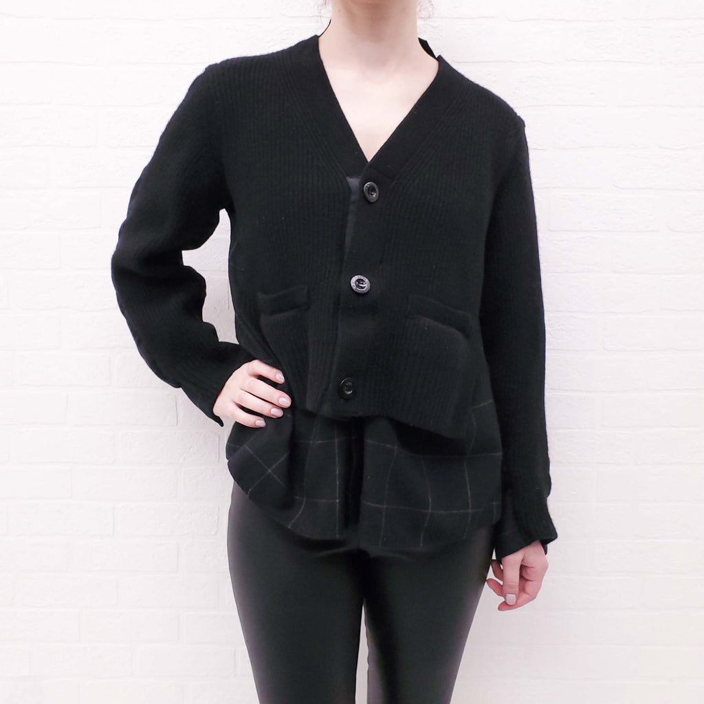 SACAI BLACK PLAID PLEATED CARDIGAN - SIZE 4/XL