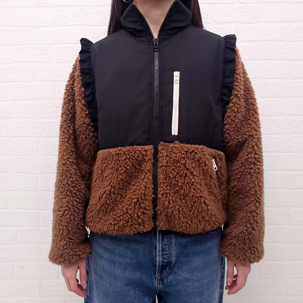 SANDY LIANG BROWN SHERPA JACKET WITH FRILL DETAIL - SIZE XS