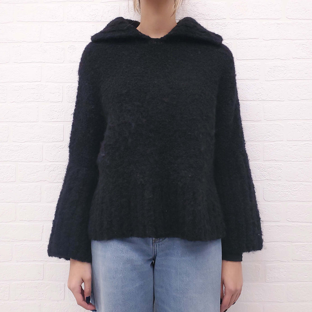 SMYTHE X AUGDEN BLACK ALPACA BLEND KNIT COLLARED SWEATER - SIZE XS