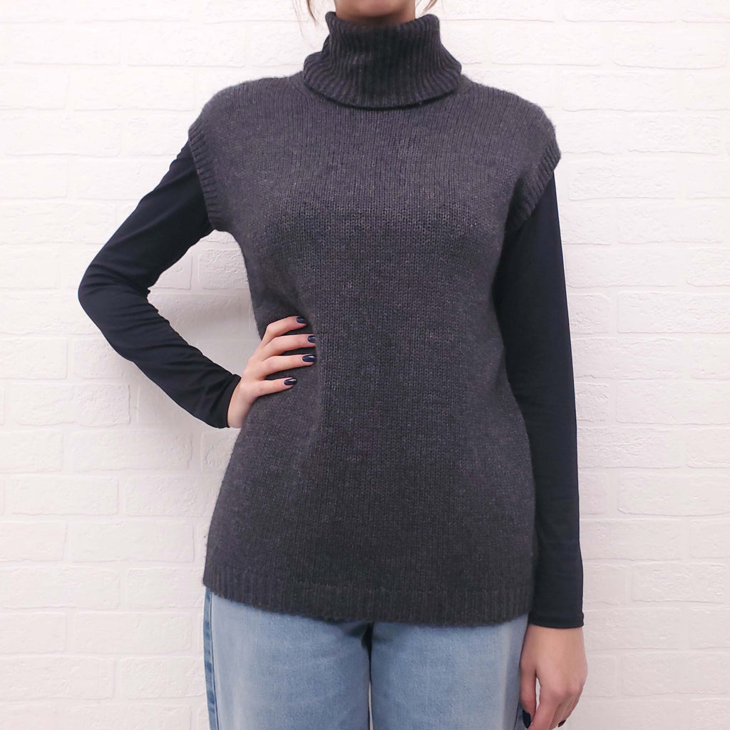 SOFIE D'HOORE GREY CASHMERE SLEEVELESS TURTLENECK SWEATER - SIZE S