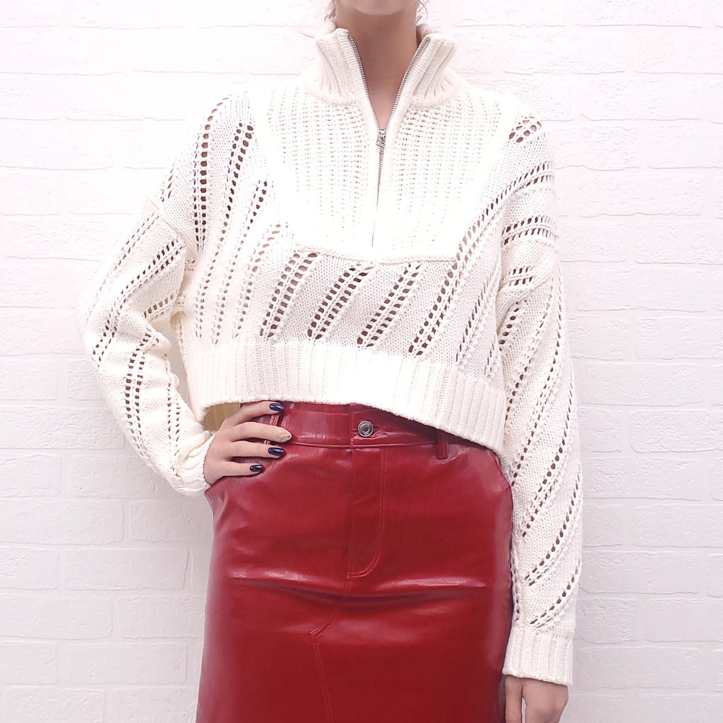 STAUD CREAM CABLE KNIT SWEATER - SIZE XS
