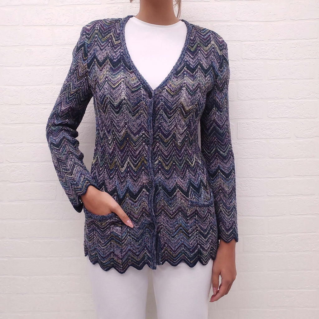 MISSONI NAVY AND PURPLE CHEVRON KNIT CARDIGAN - SIZE 38