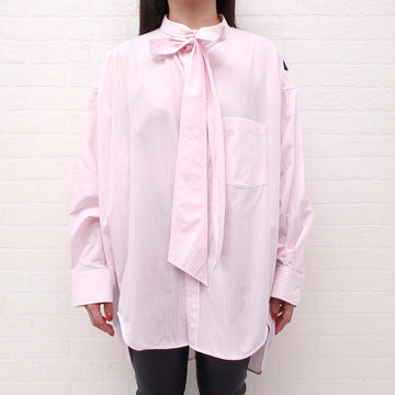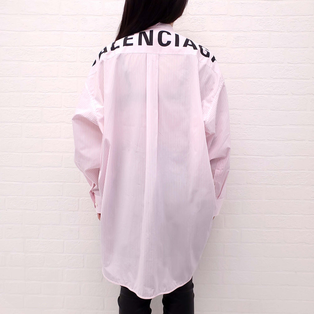 BALENCIAGA OVERSIZED PINK AND WHITE STRIPED LOGO BUTTON UP SHIRT - SIZE 38