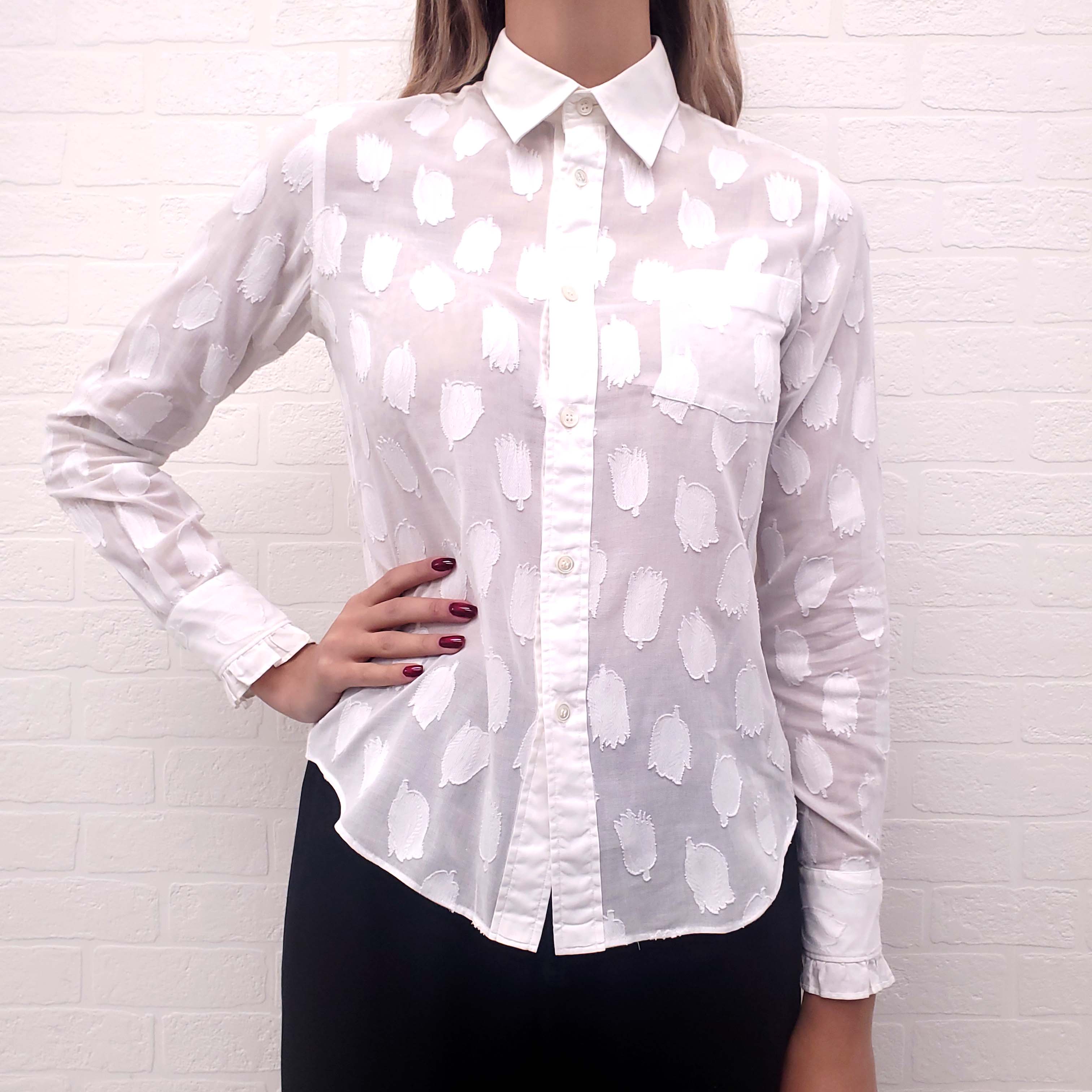 COMME DES GARÇONS WHITE TULIP PRINT BUTTON UP BLOUSE - SIZE S