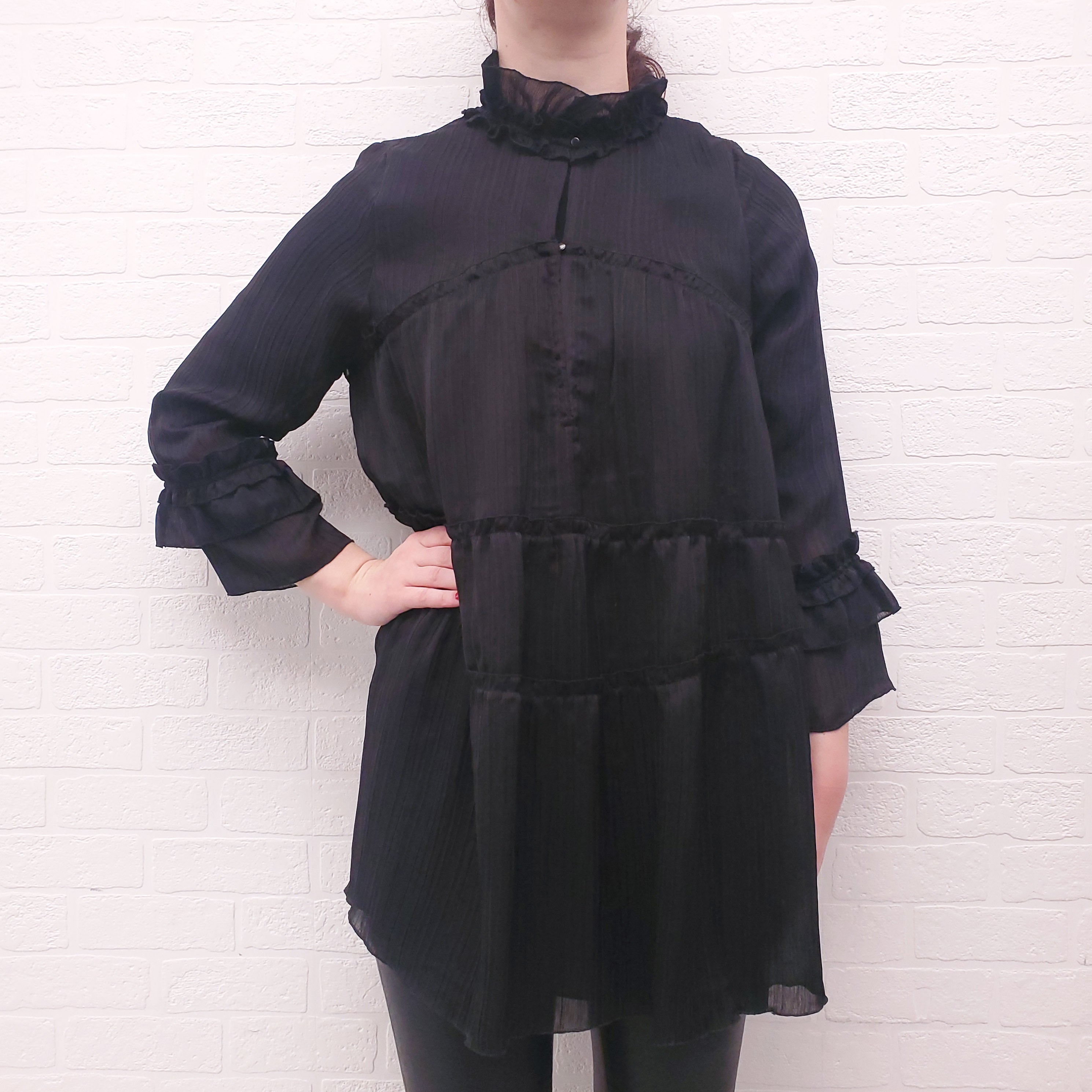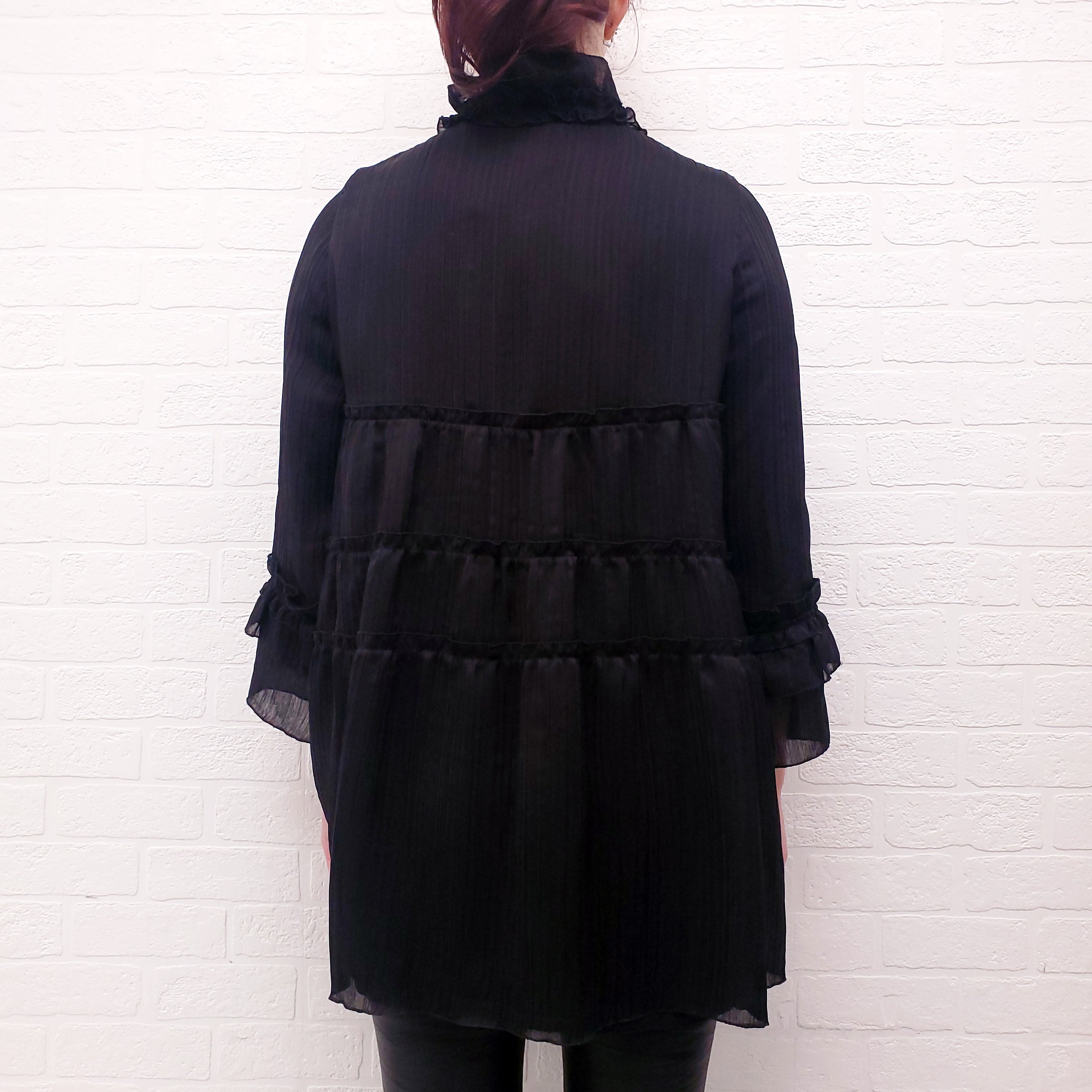 IRO BLACK PEASANT STRIPED TUNIC BLOUSE - SIZE M/L