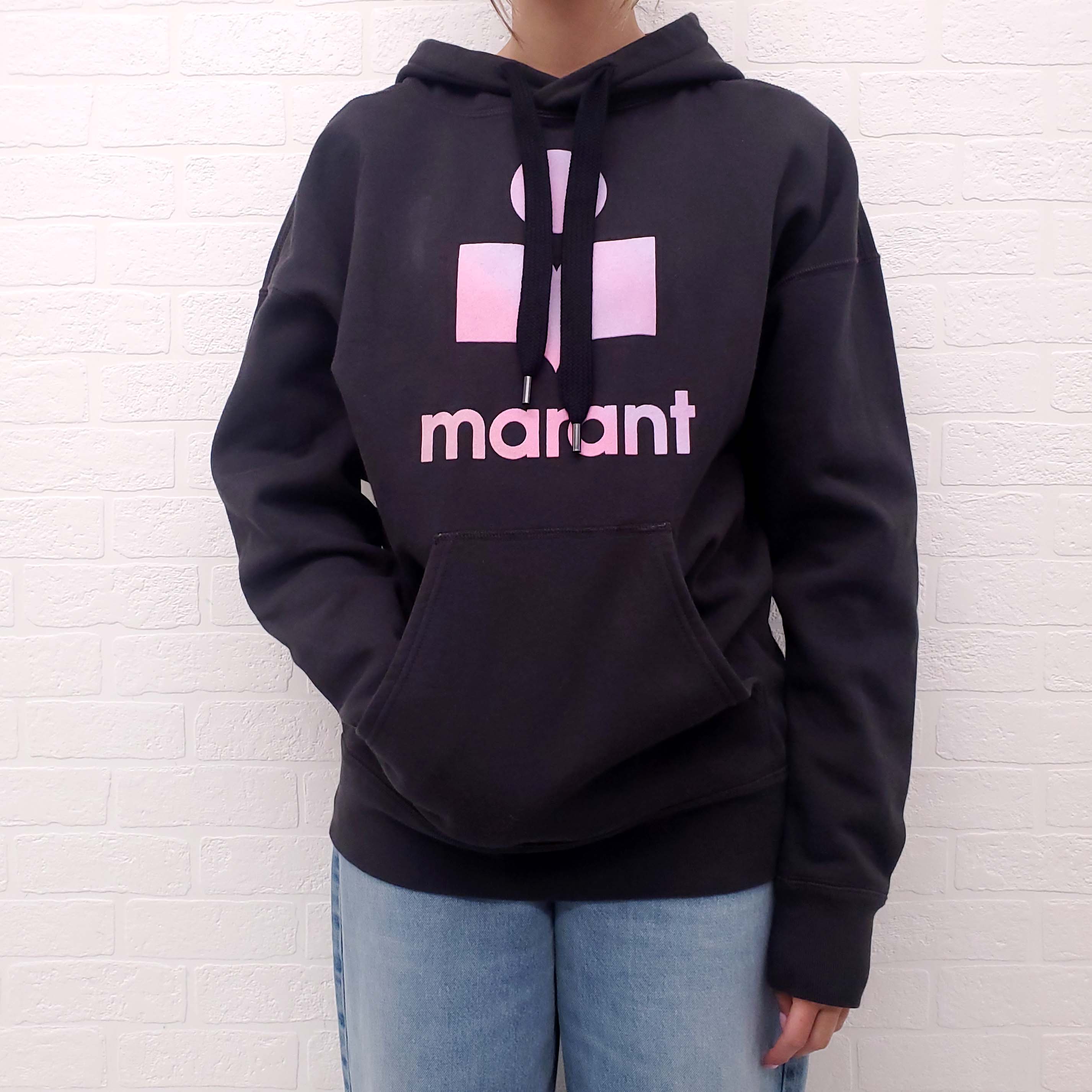 ISABEL MARANT HOODED LOGO SWEATSHIRT WITH PINK OMBRE LOGO - SIZE 34