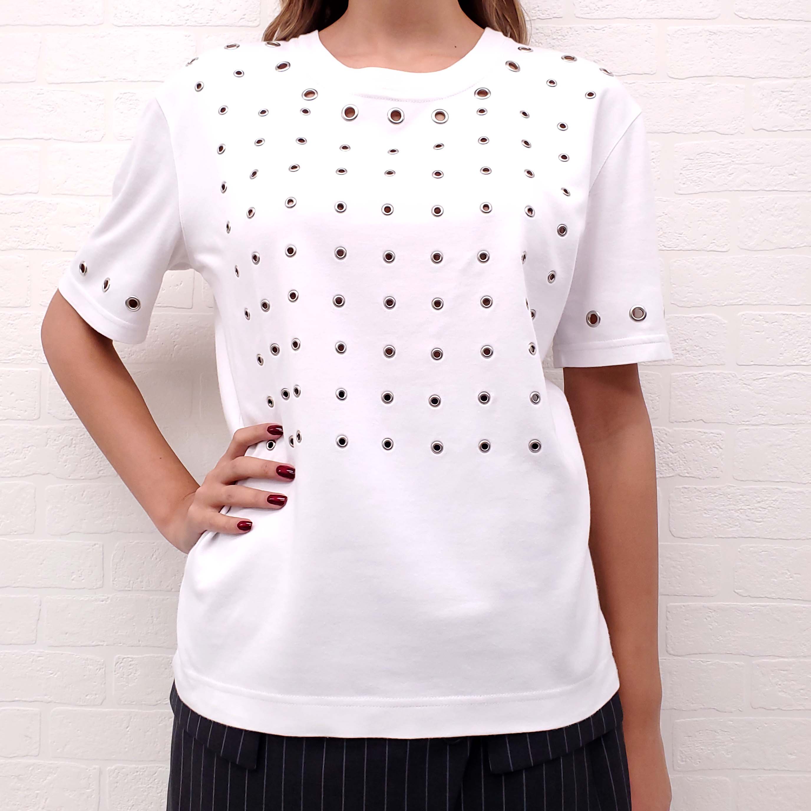 MONSE WHITE T-SHIRT WITH SILVER GROMMETS - SIZE S