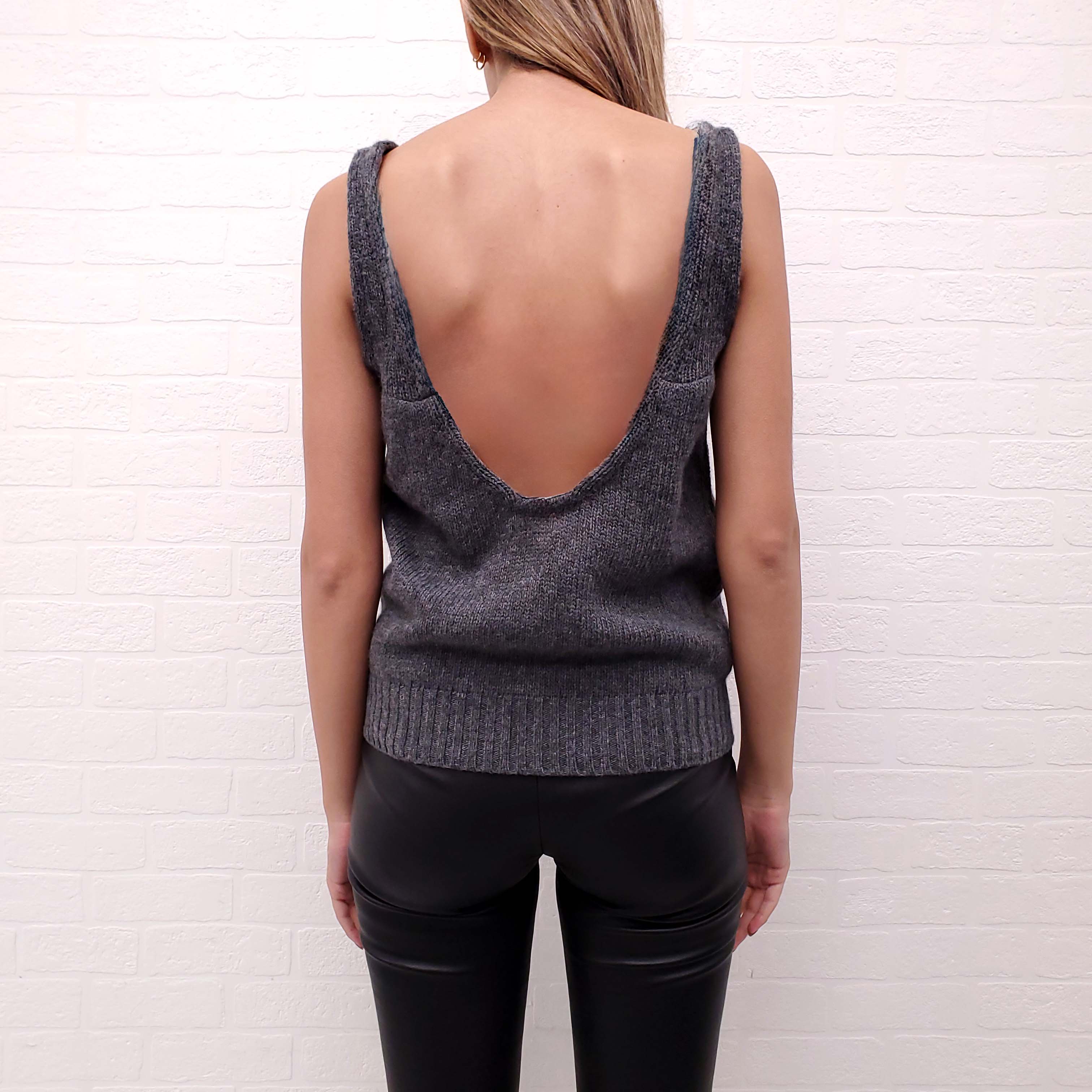 PRADA GREY KNIT TANK WITH TRIANGLE LOGO DETAIL - SIZE XS