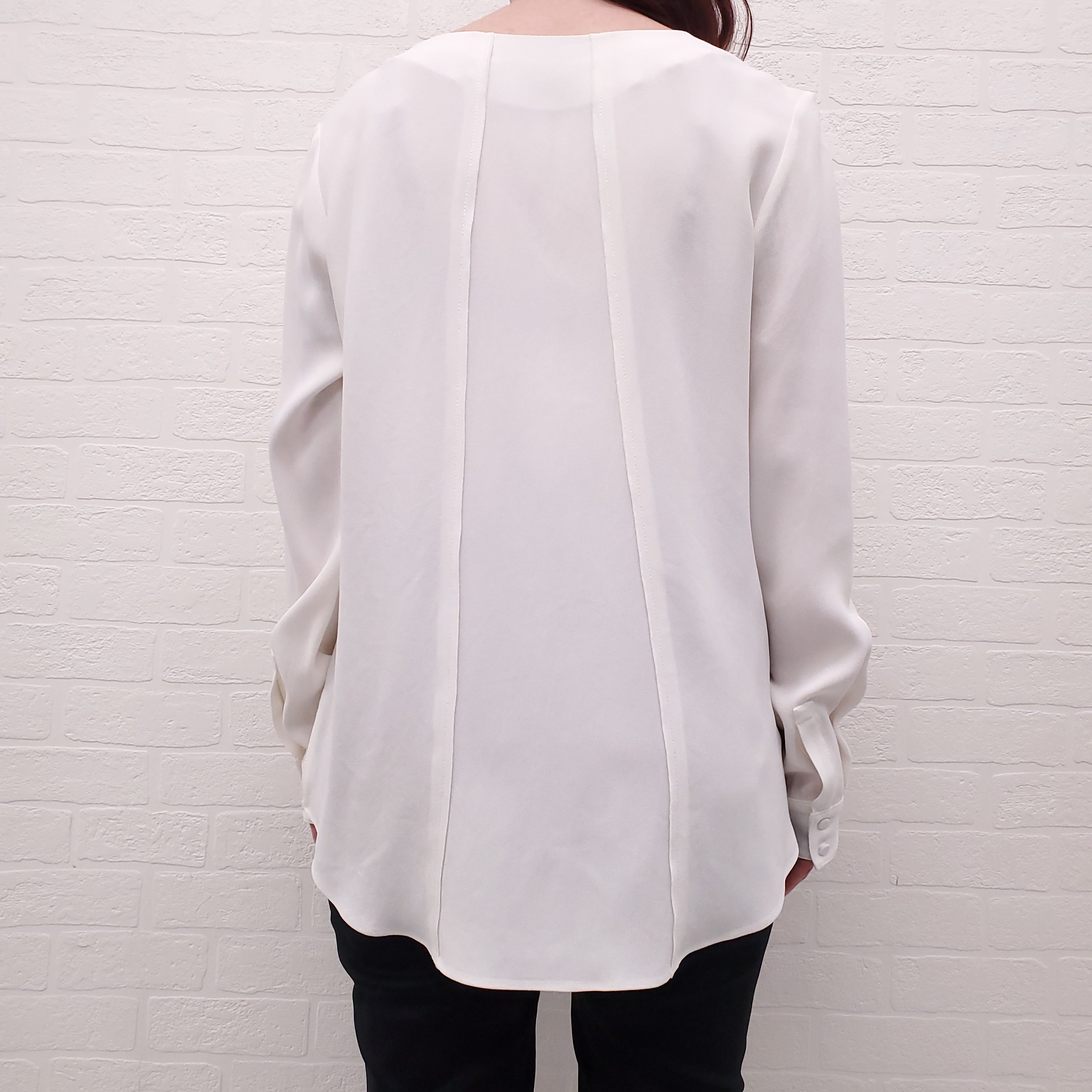 PROENZA SCHOULER WHITE BLOUSE WITH RIBBONING DETAIL - SIZE 8