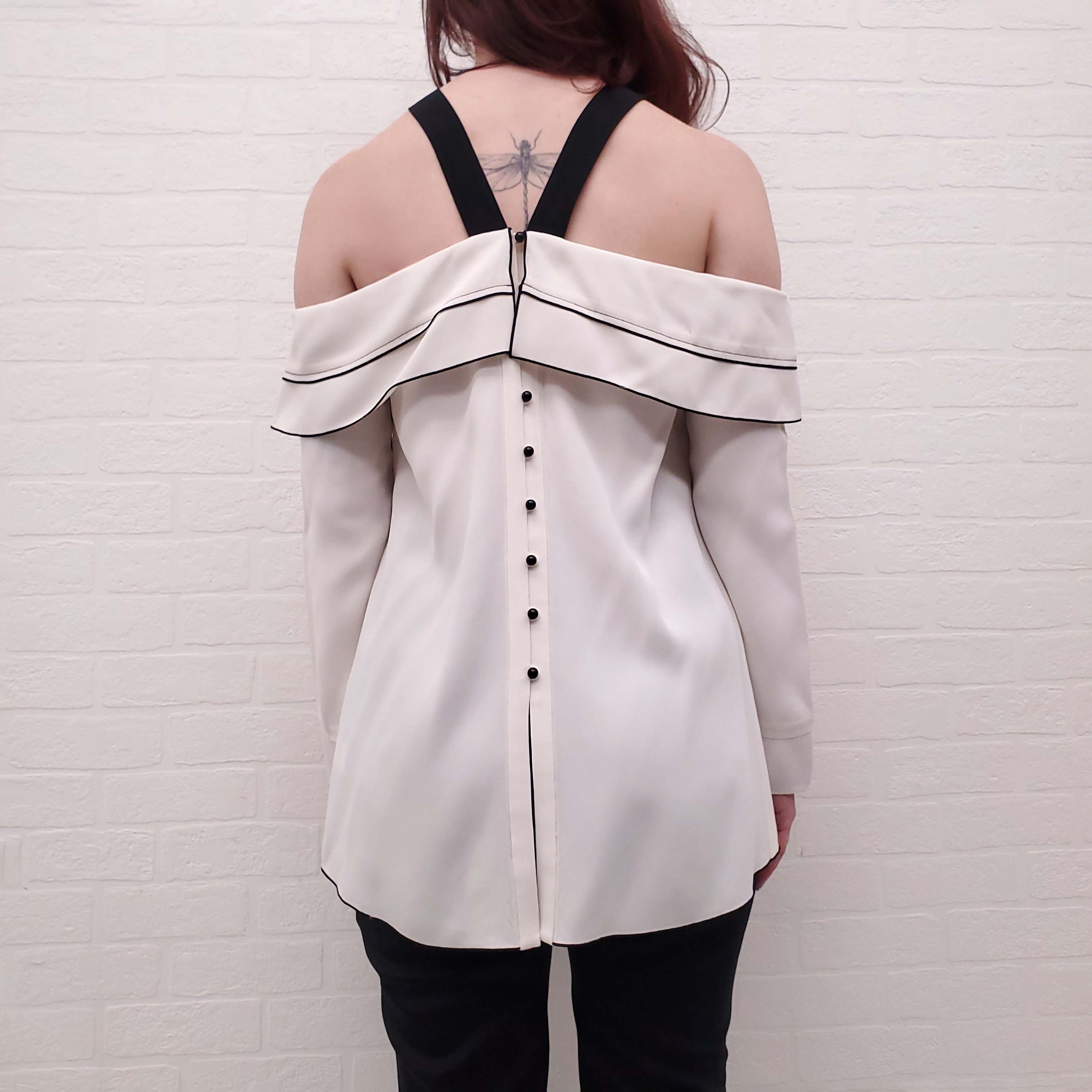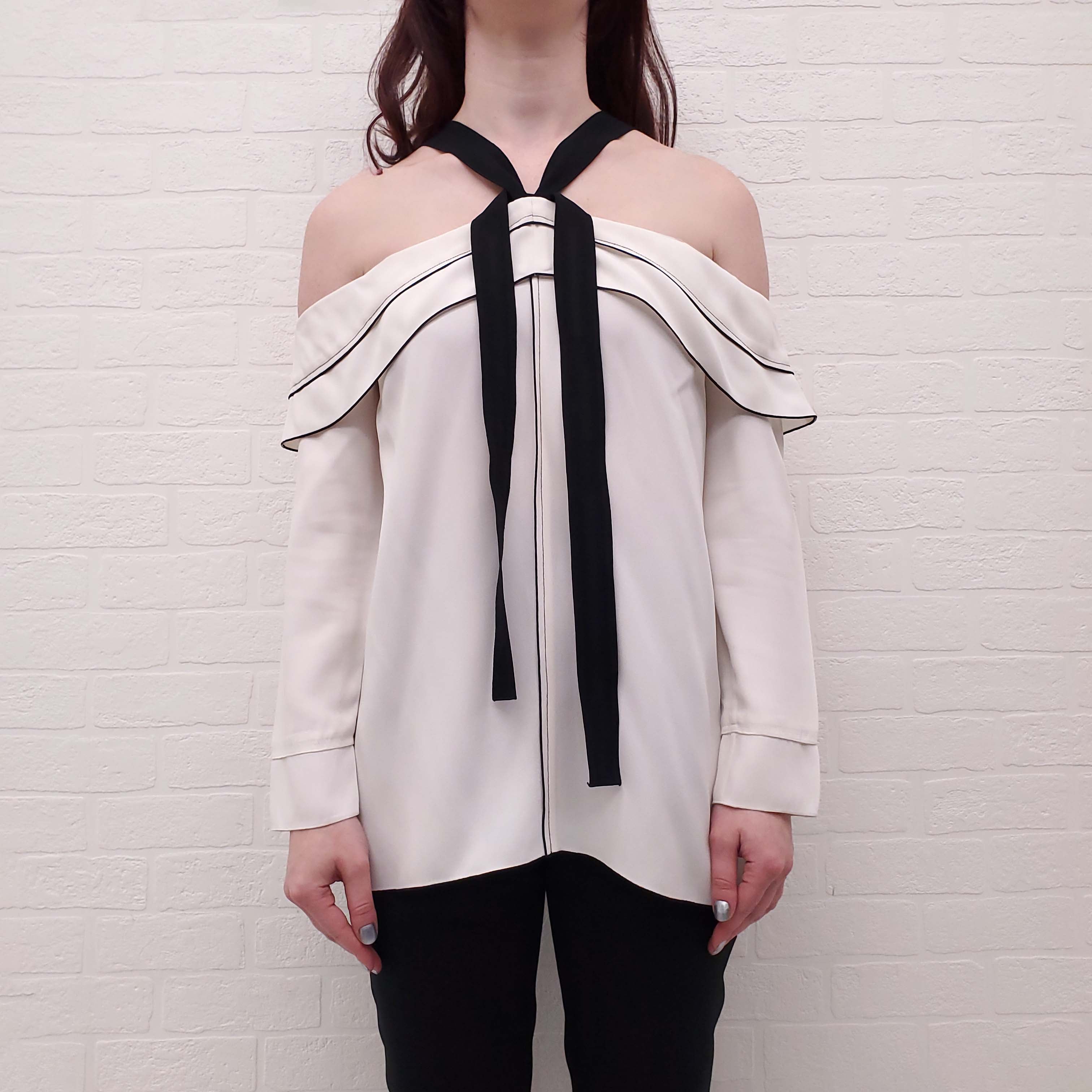PROENZA SCHOULER CREAM BLOUSE WITH BLACK PIPING DETAIL - SIZE 6