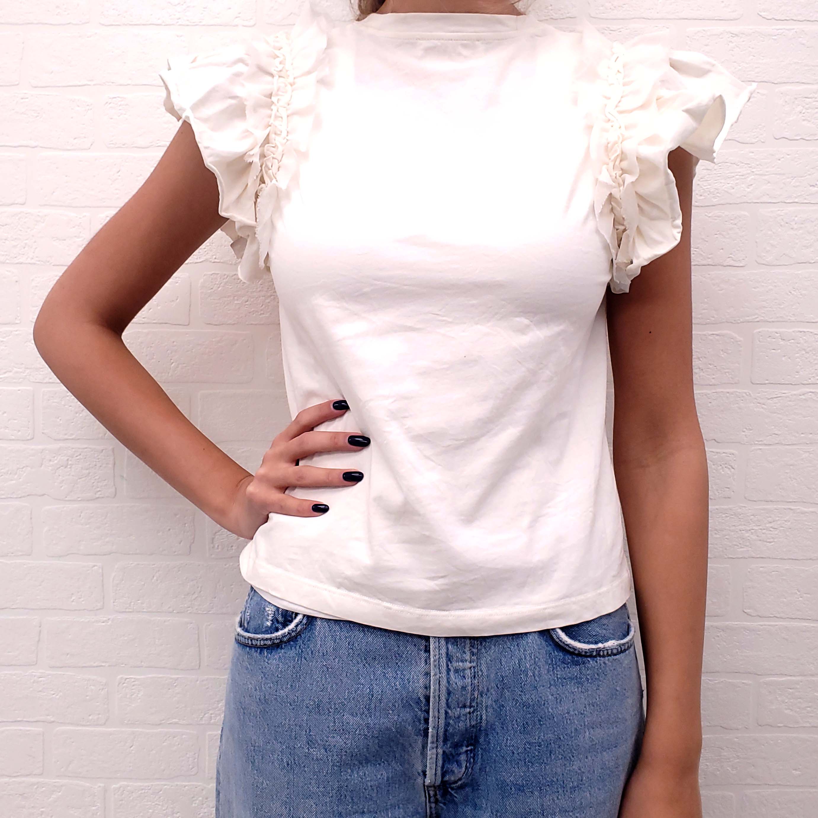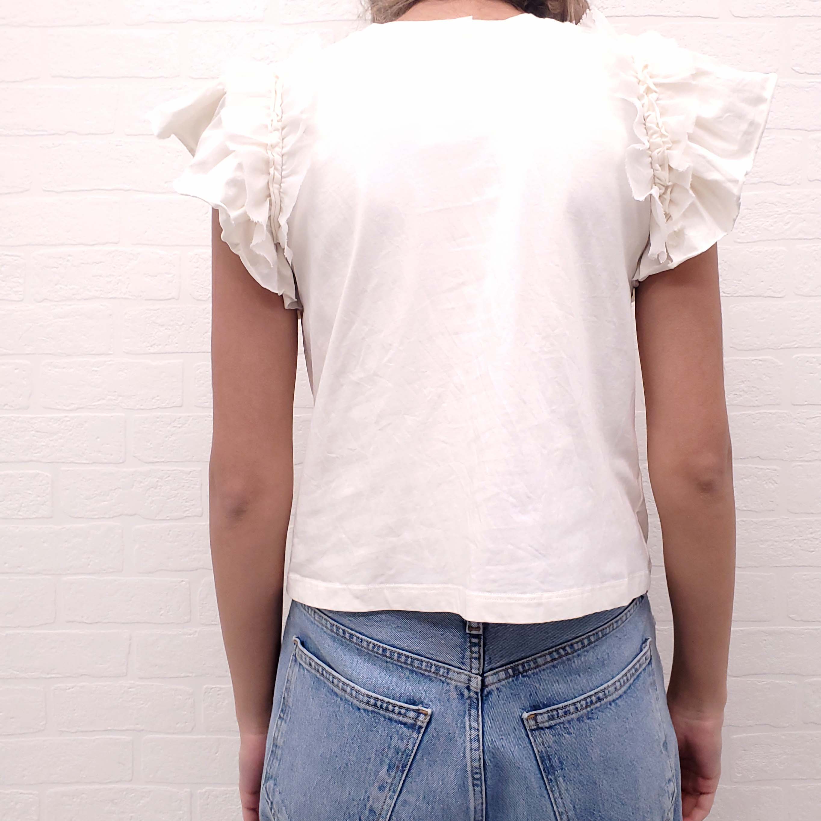 ULLA JOHNSON CREAM T-SHIRT WITH RUFFLE DETAIL - SIZE S