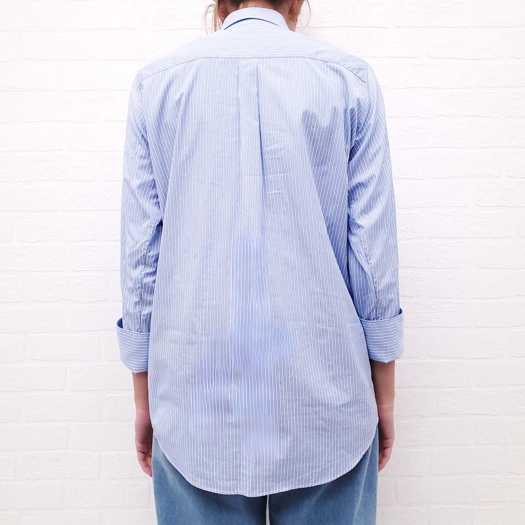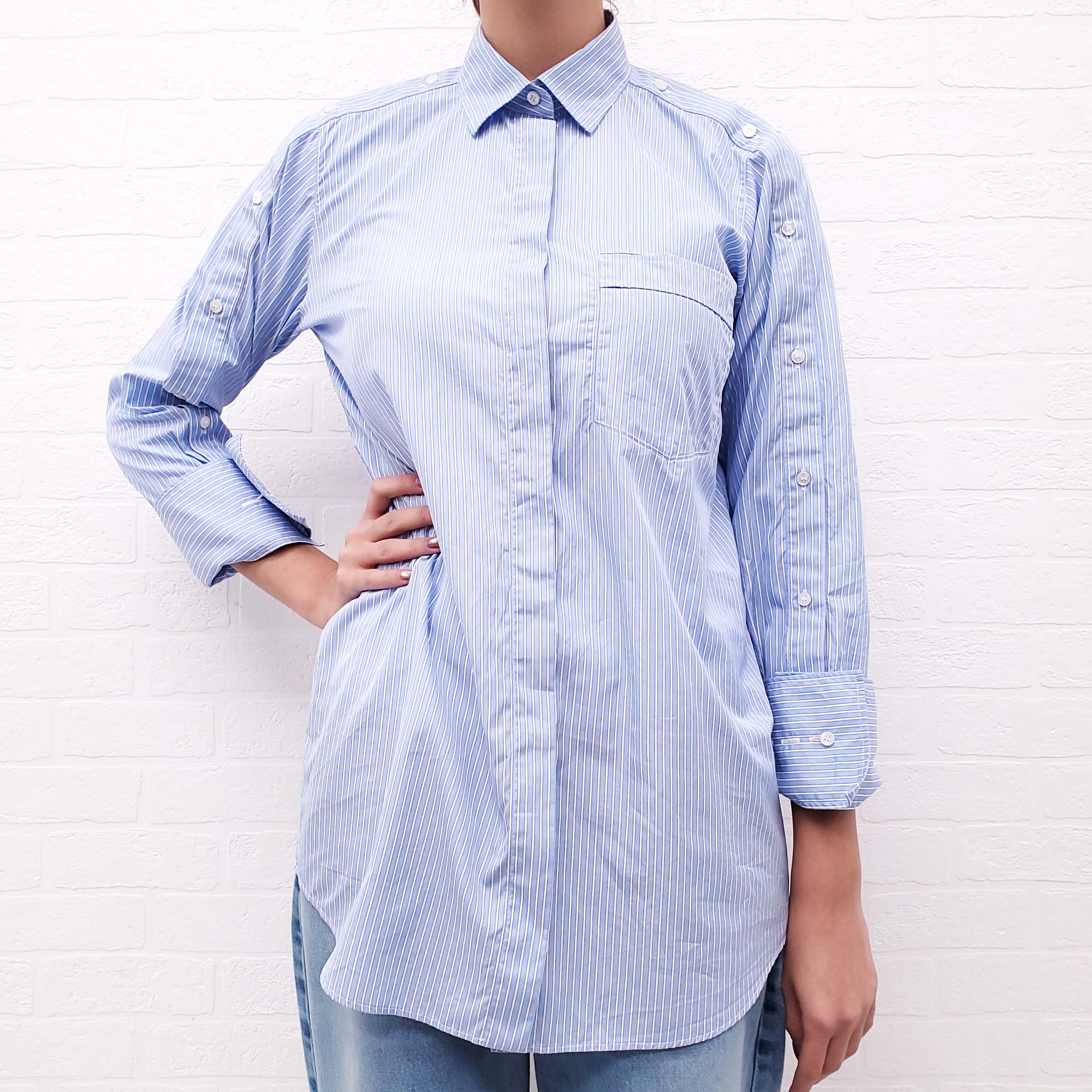 VALENTINO BLUE STRIPED BUTTON UP BLOUSE - SIZE 2