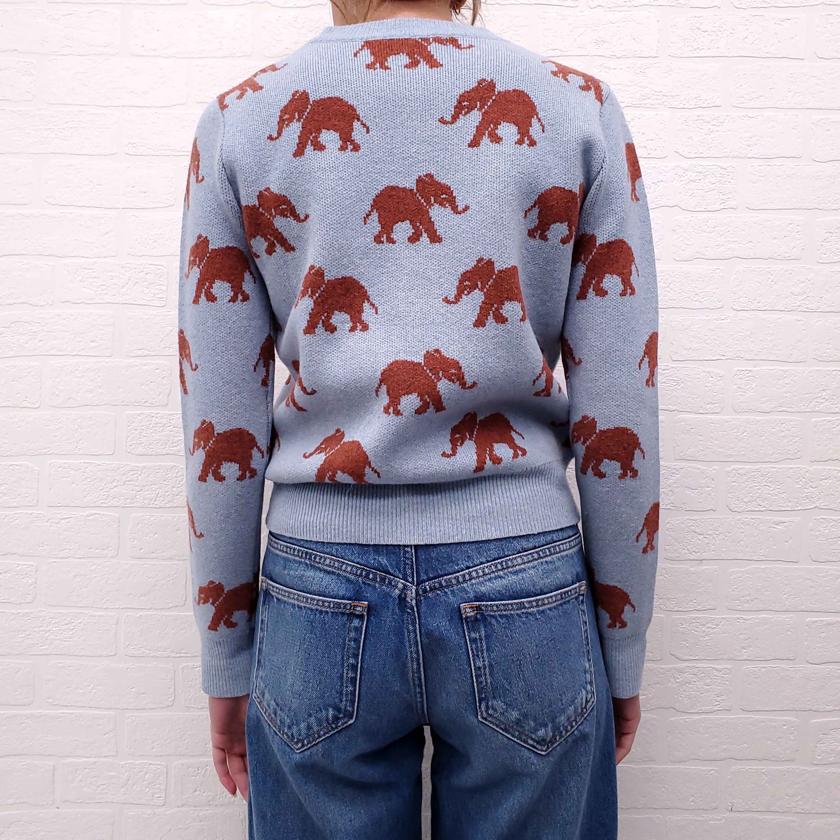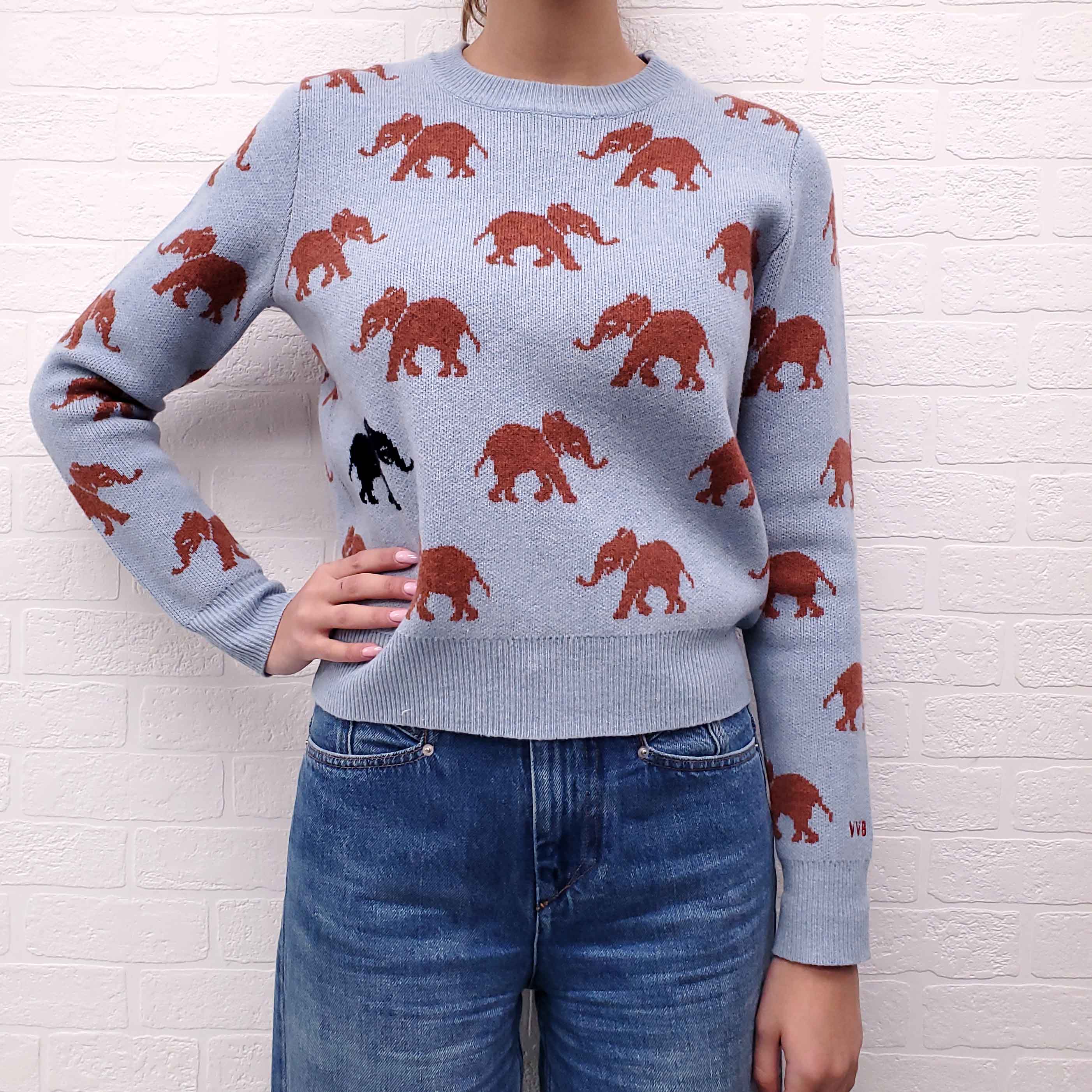 VICTORIA BY VICTORIA BECKHAM WOOL JACQUARD CREWNECK SWEATER WTH ELEPHANTS - SIZE XS