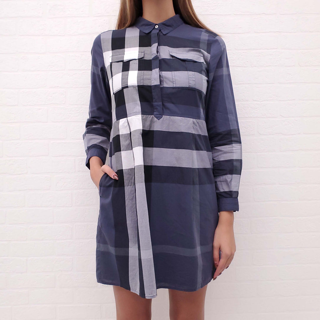 BURBERRY BRIT NAVY CHECK TUNIC DRESS - SIZE 6