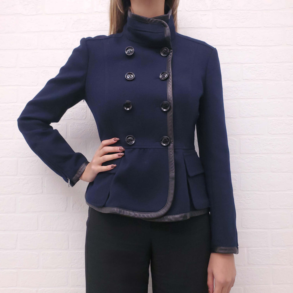 BURBERRY BRIT NAVY JACKET WITH LEATHER DETAIL - SIZE 6