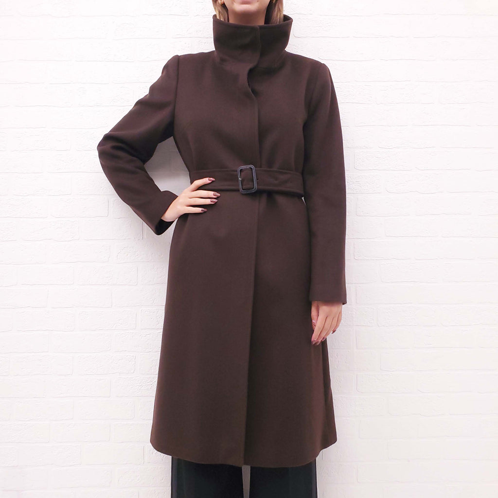 BURBERRY BROWN WOOL AND CASHMERE LONG COAT WITH BELT AND CHECK INTERIOR - SIZE 10
