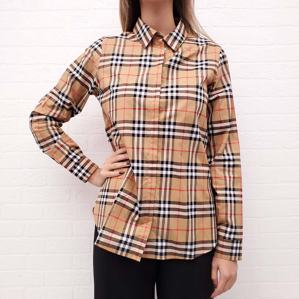 BURBERRY CHECK BUTTON UP BLOUSE - SIZE 6
