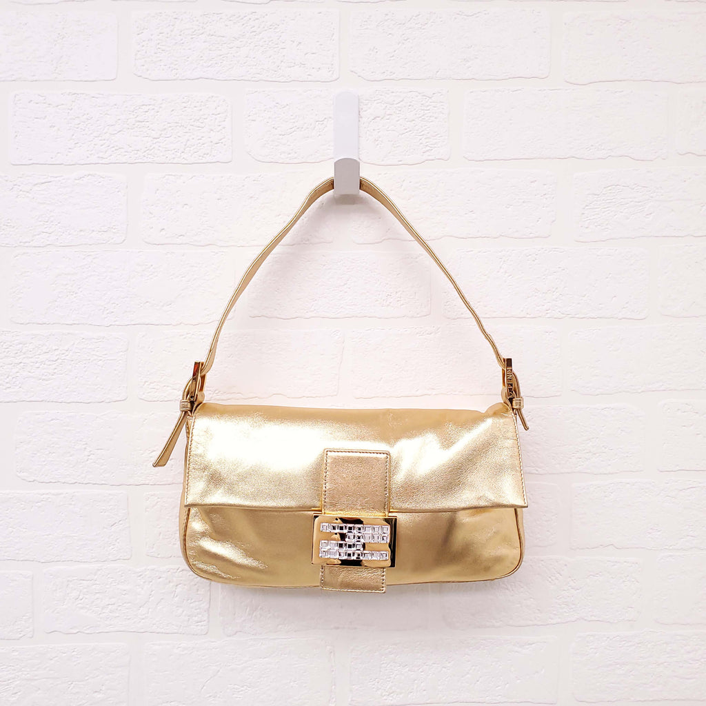 FENDI GOLD LEATHER AND CRYSTAL 'BAGUETTE' SHOULDER BAG