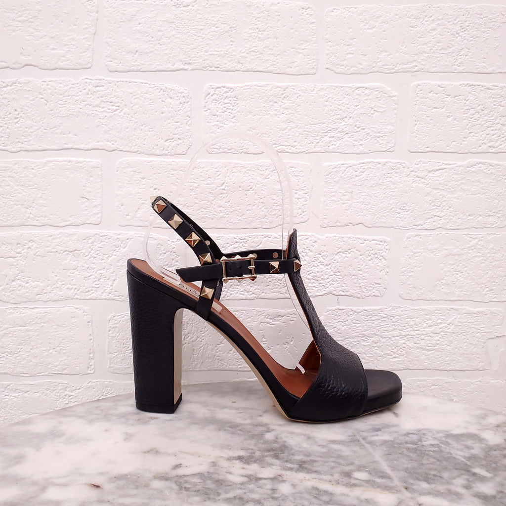 VALENTINO BLACK ROCKSTUD OPEN TOE HEELS - SIZE 37