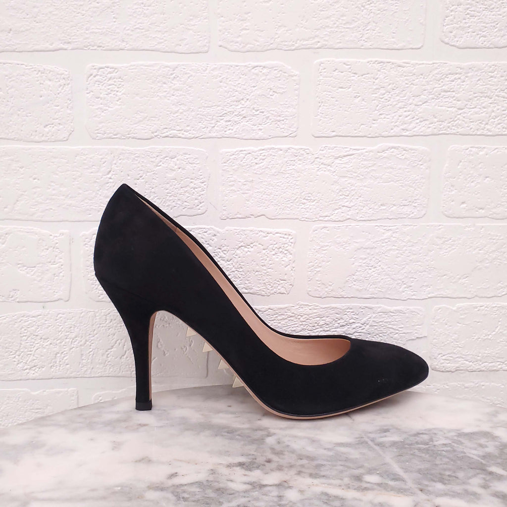 VALENTINO BLACK SUEDE ROUND TOE HEELS WITH ROCKSTUD DETAIL - SIZE 40