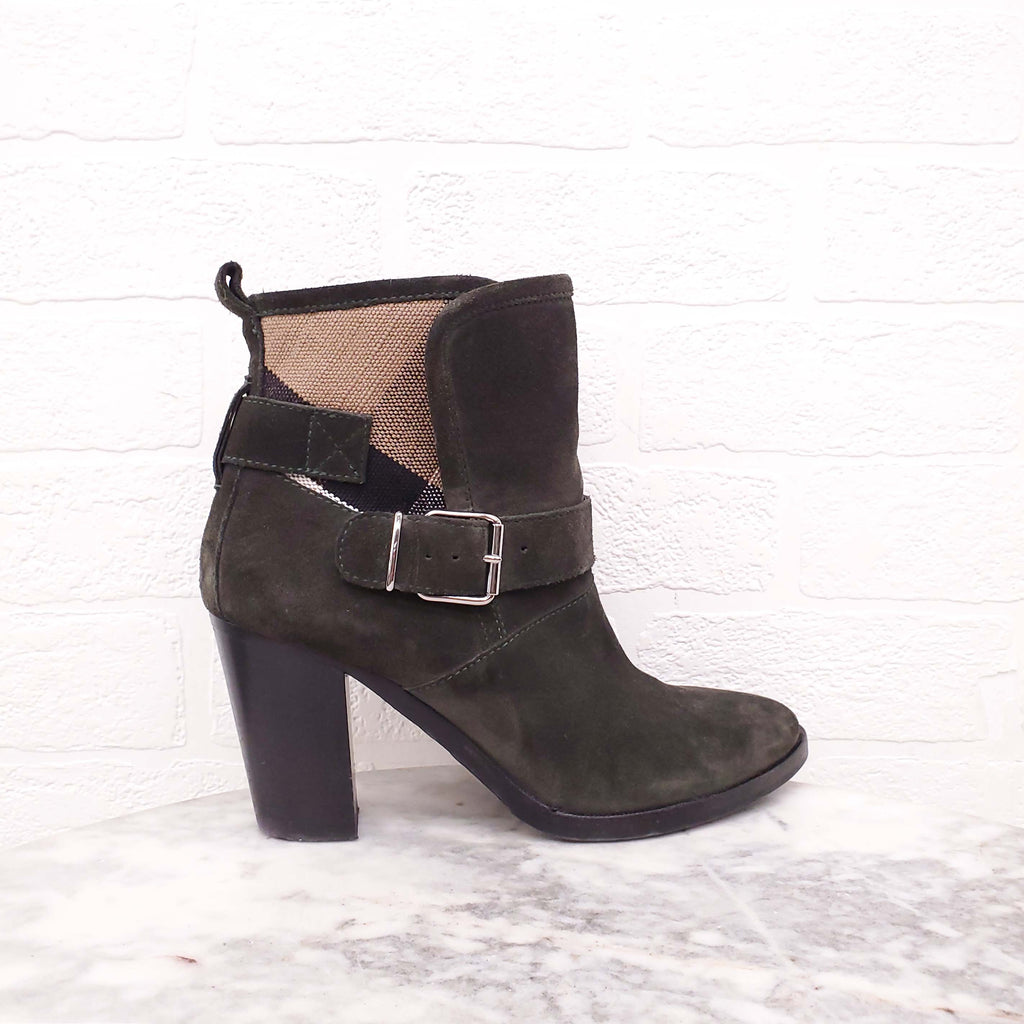 BURBERRY GREEN SUEDE BOOTIES WITH CHECK DETAIL - SIZE 37.5