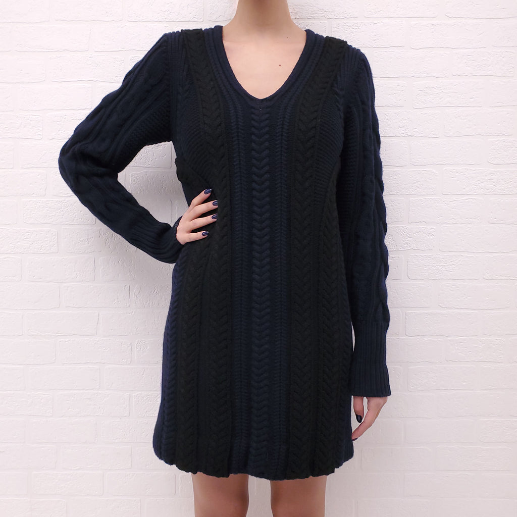 BURBERRY NAVY AND BLACK CABLE KNIT SWEATER DRESS - SIZE M