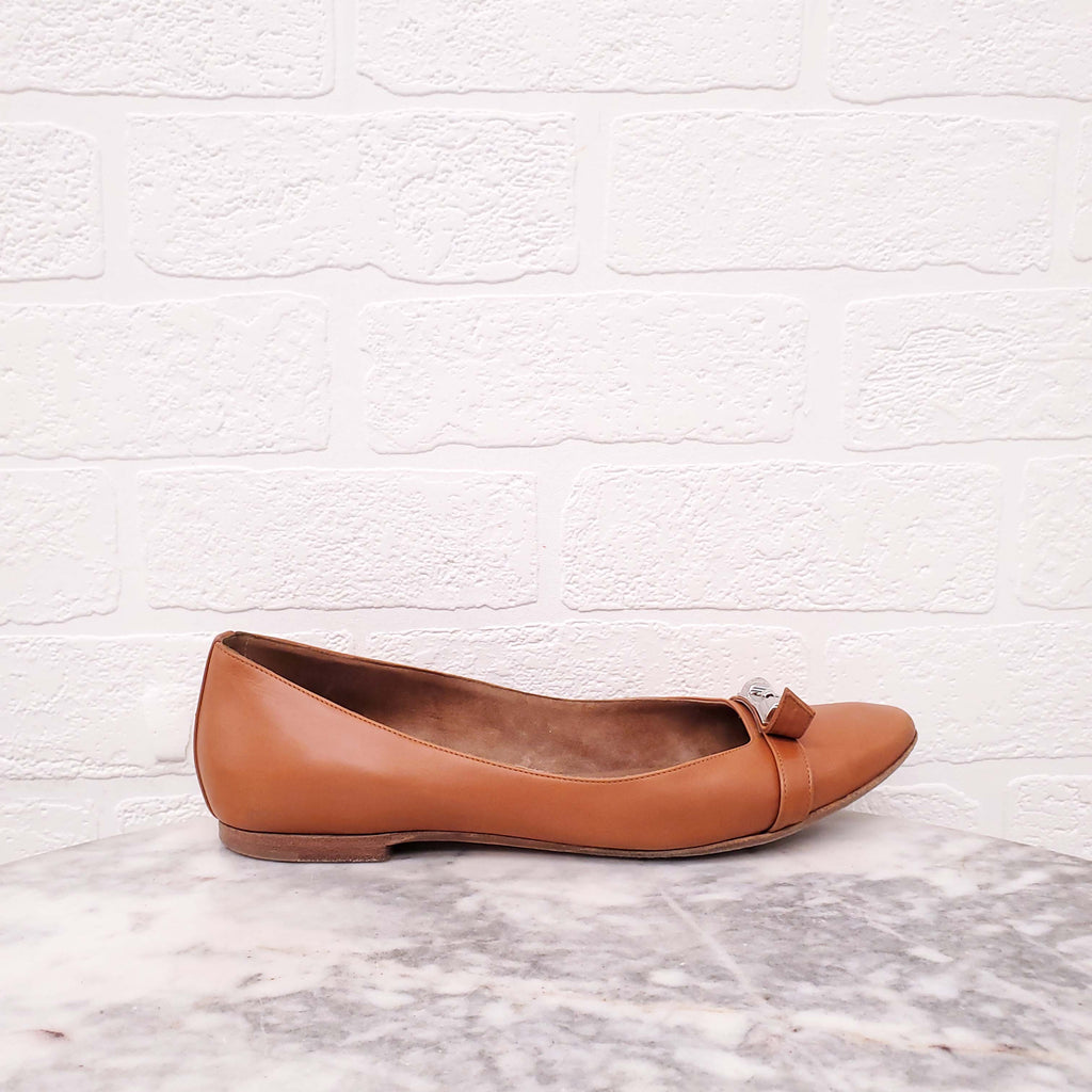 HERMÈS TAN LEATHER 'KELLY' FLATS - SIZE 36.5