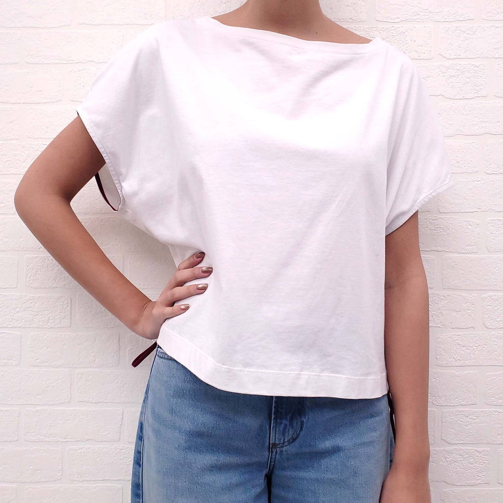 MARNI WHITE T-SHIRT WITH RED DRAWSTRINGS - SIZE 40