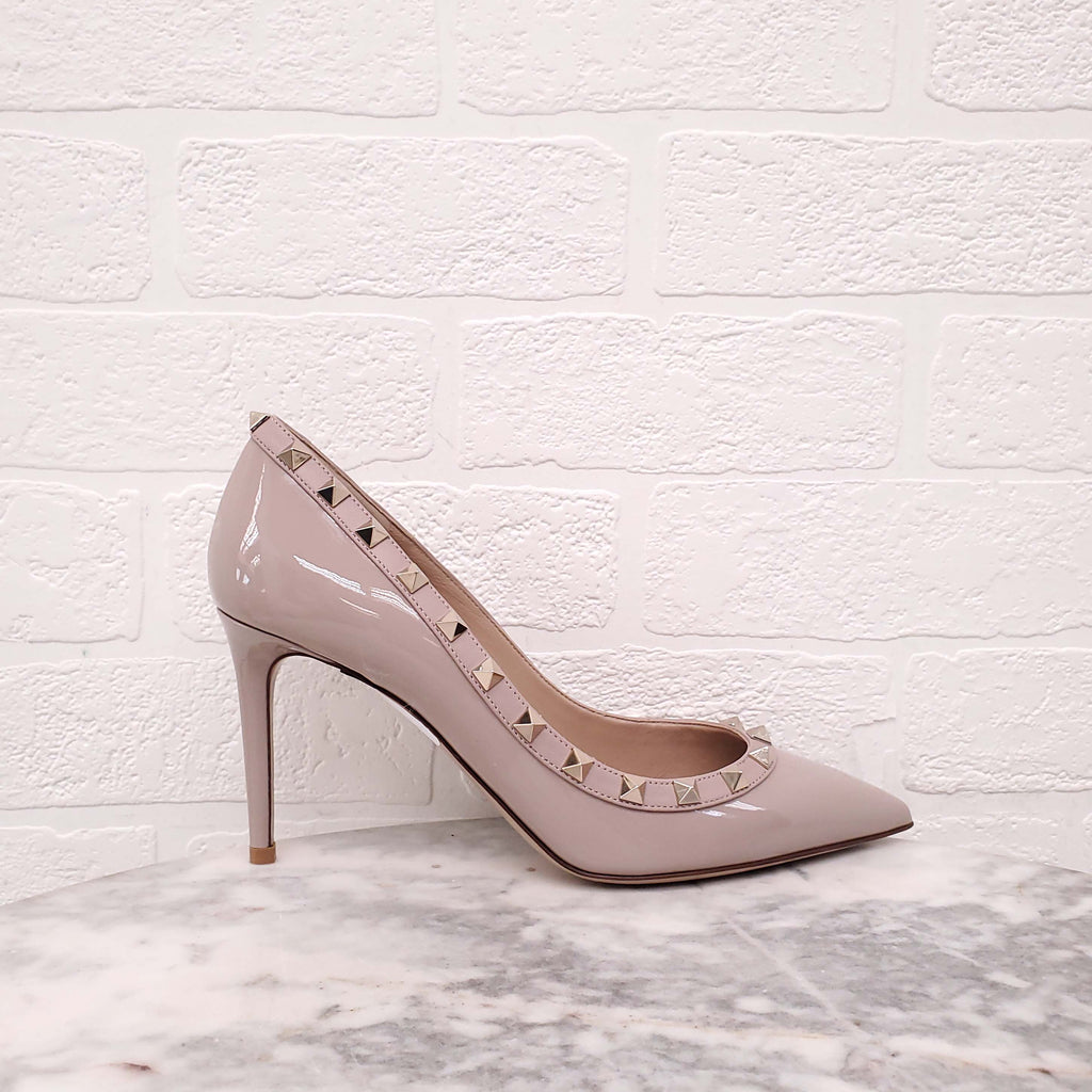 VALENTINO BLUSH PATENT ROCKSTUD POINTED HEELS - SIZE 38