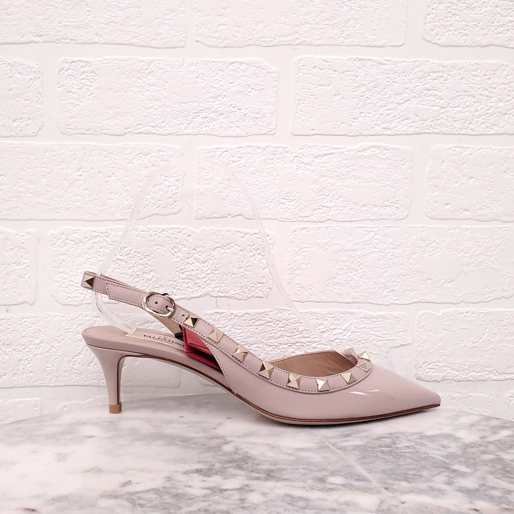 VALENTINO BLUSH PATENT ROCKSTUD SLINGBACK KITTEN HEELS - SIZE 36