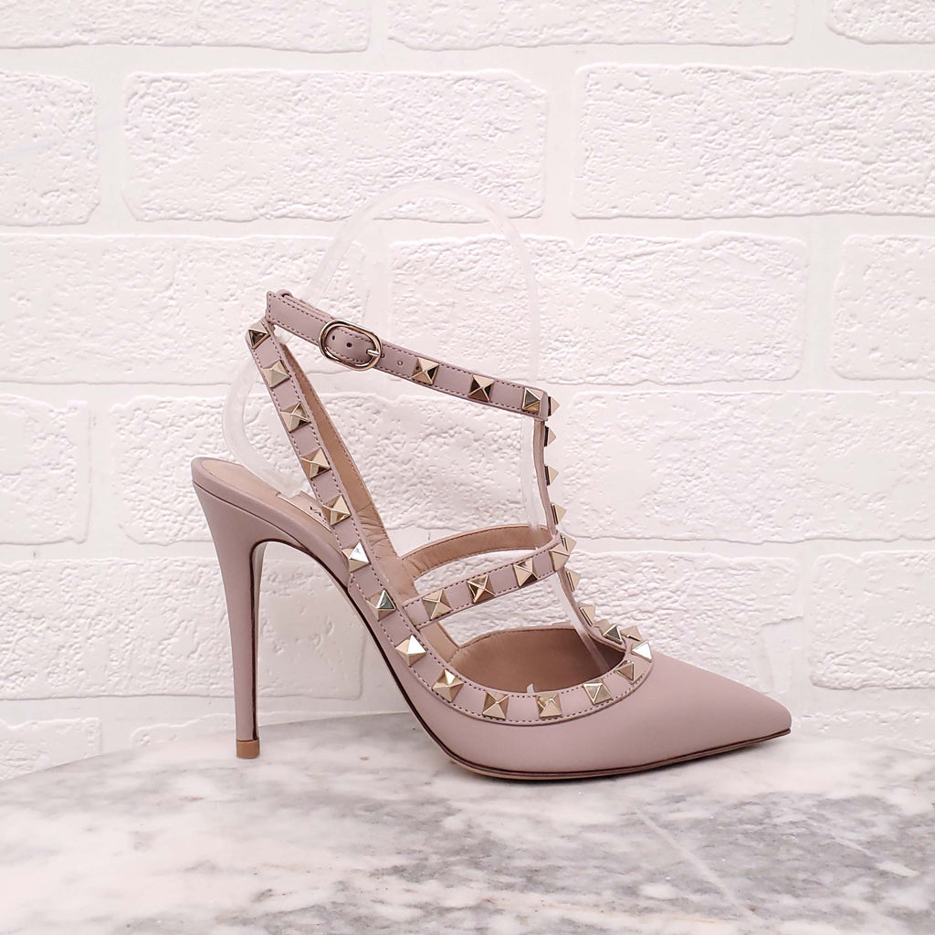 VALENTINO BLUSH ROCKSTUD ANKLE STRAP HEELS - SIZE 36