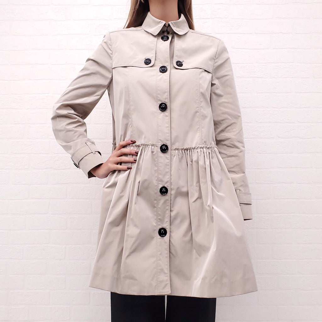 BURBERRY PROSUM BEIGE TRENCH COAT WITH ROUCHING DETAIL AND BELT - SIZE 42