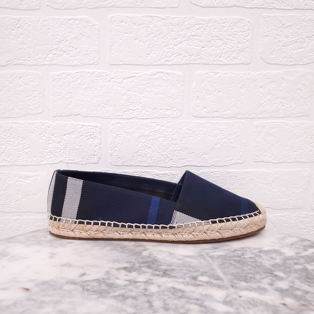 BURBERRY NAVY CHECK ESPADRILLES - SIZE 37.5