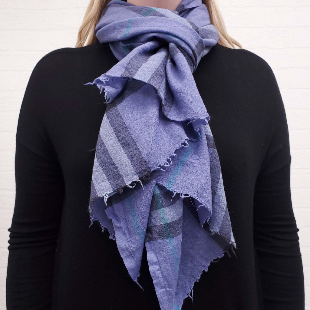 BURBERRY PERIWINKLE AND TURQUOISE CHECK SCARAF