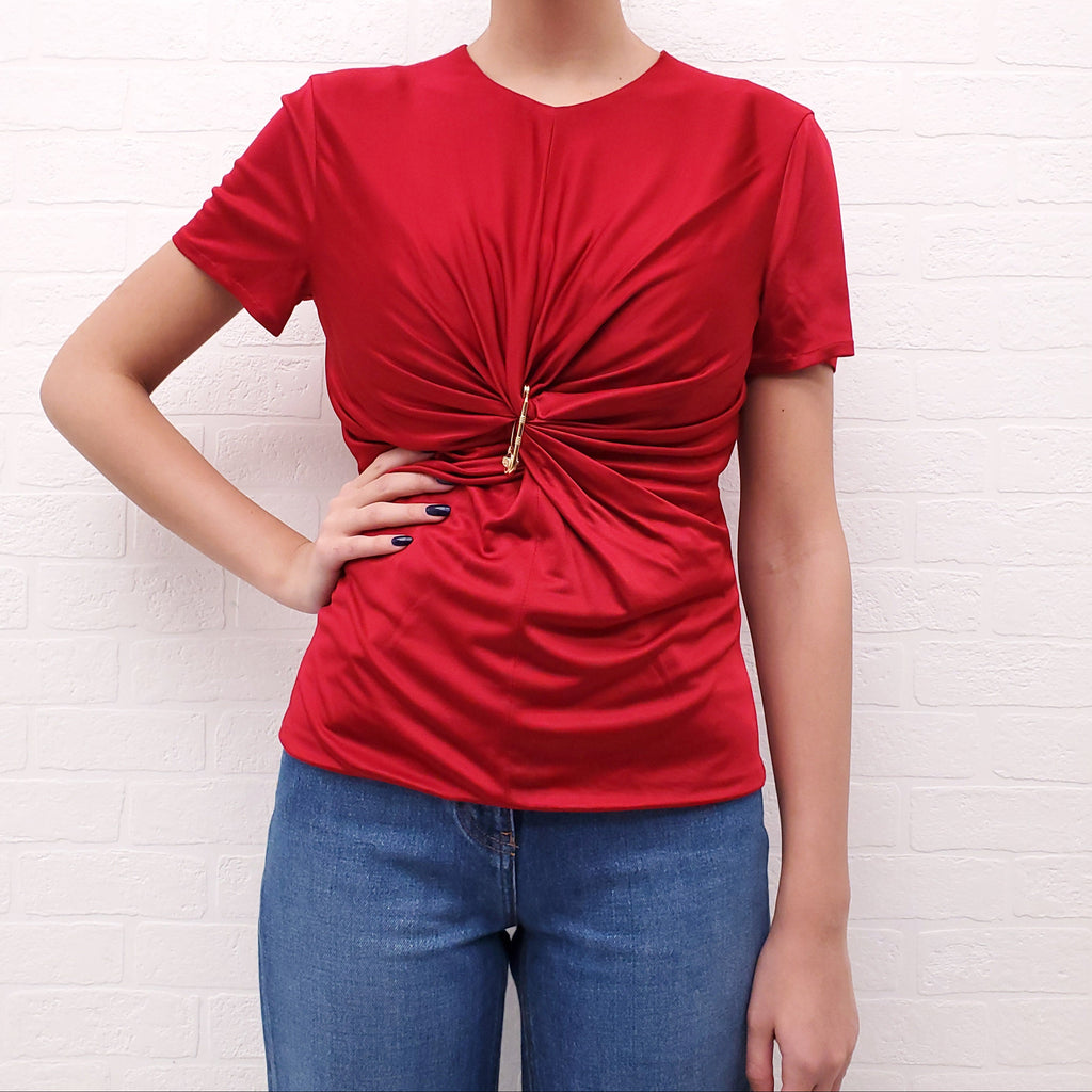 VERSACE RED MEDUSA SAFETY PIN BLOUSE - SIZE 46