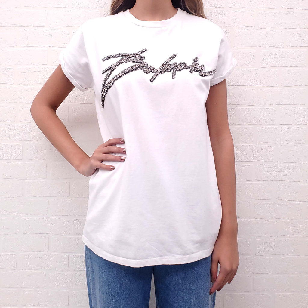 BALMAIN OVERSIZED WHITE CRYSTAL LOGO T-SHIRT - SIZE 34