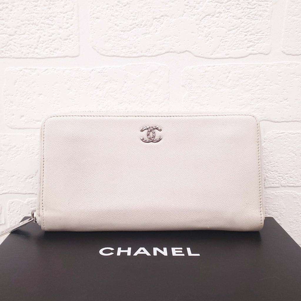 CHANEL CREAM PEBBLED LEATHER ZIP AROUND WALLET WITH LOGO