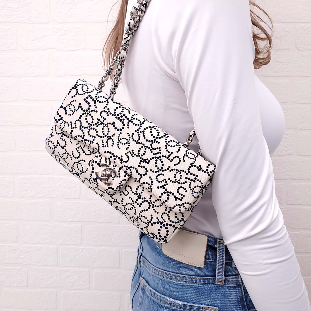 CHANEL CREAM AND NAVY LIMITED EDITION CANVAS SMALL LOGO FLAP BAG