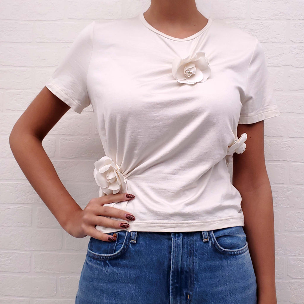 CHANEL CREAM CAMELLIA T-SHIRT - SIZE 36